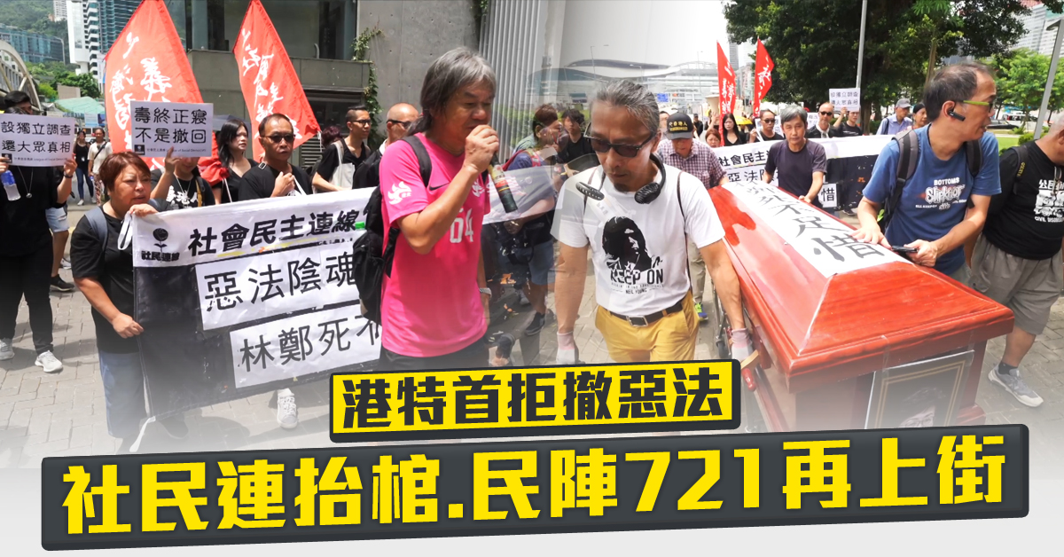 港特首拒撤惡法 社民連抬棺.民陣721再上街