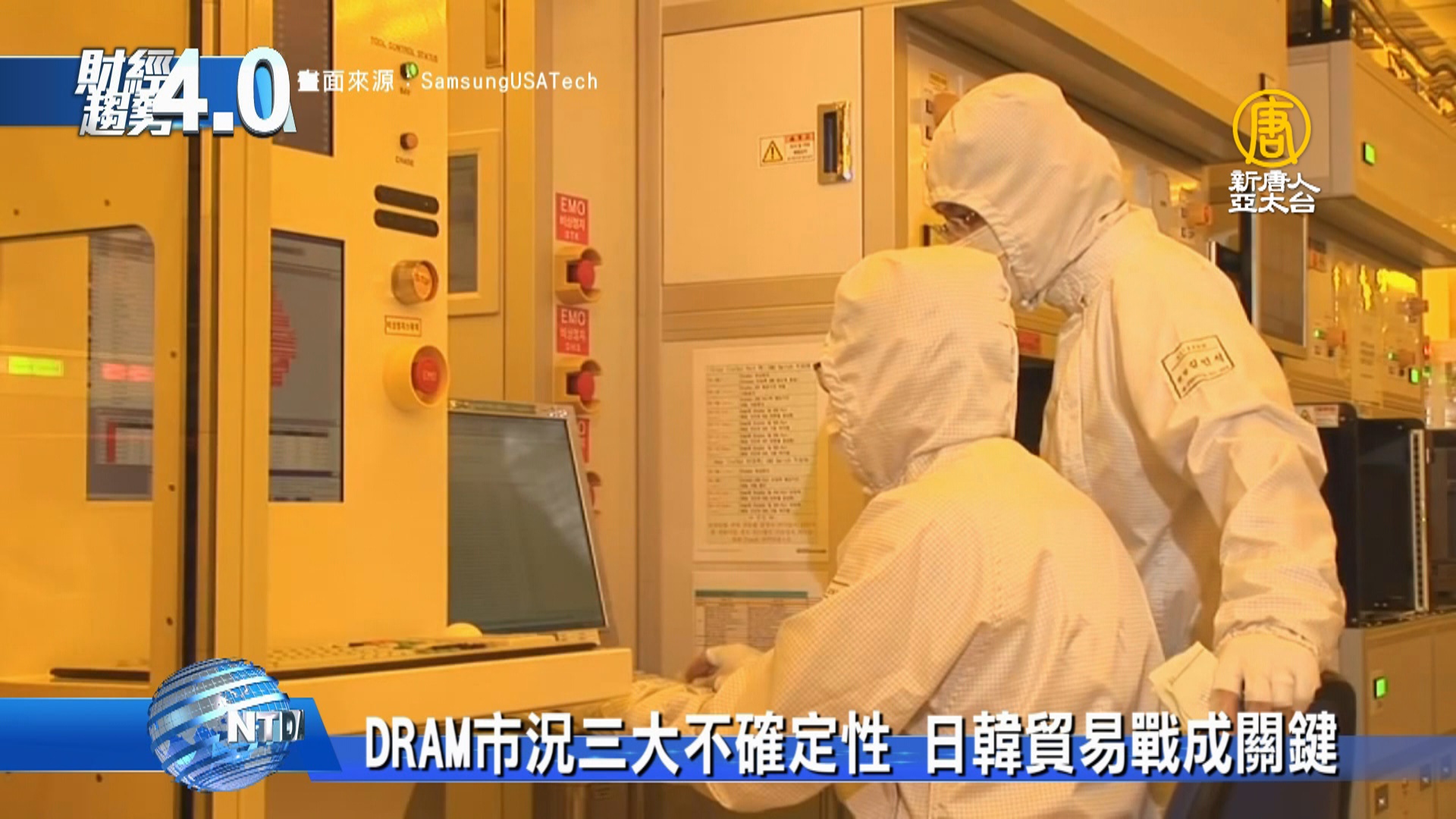 【新唐人亞太台 2019 年 07 月 13 日訊】好,日韓兩國掀起貿易紛爭,對DRAM產業造成影響,國內大廠南亞科評估,日本管制出口原料,短時間,可以說難以找到替代,有業者向南亞科表示關切。第三季DRAM市況雖然有旺季效應,不過不確定因素影響下,還要再觀察。