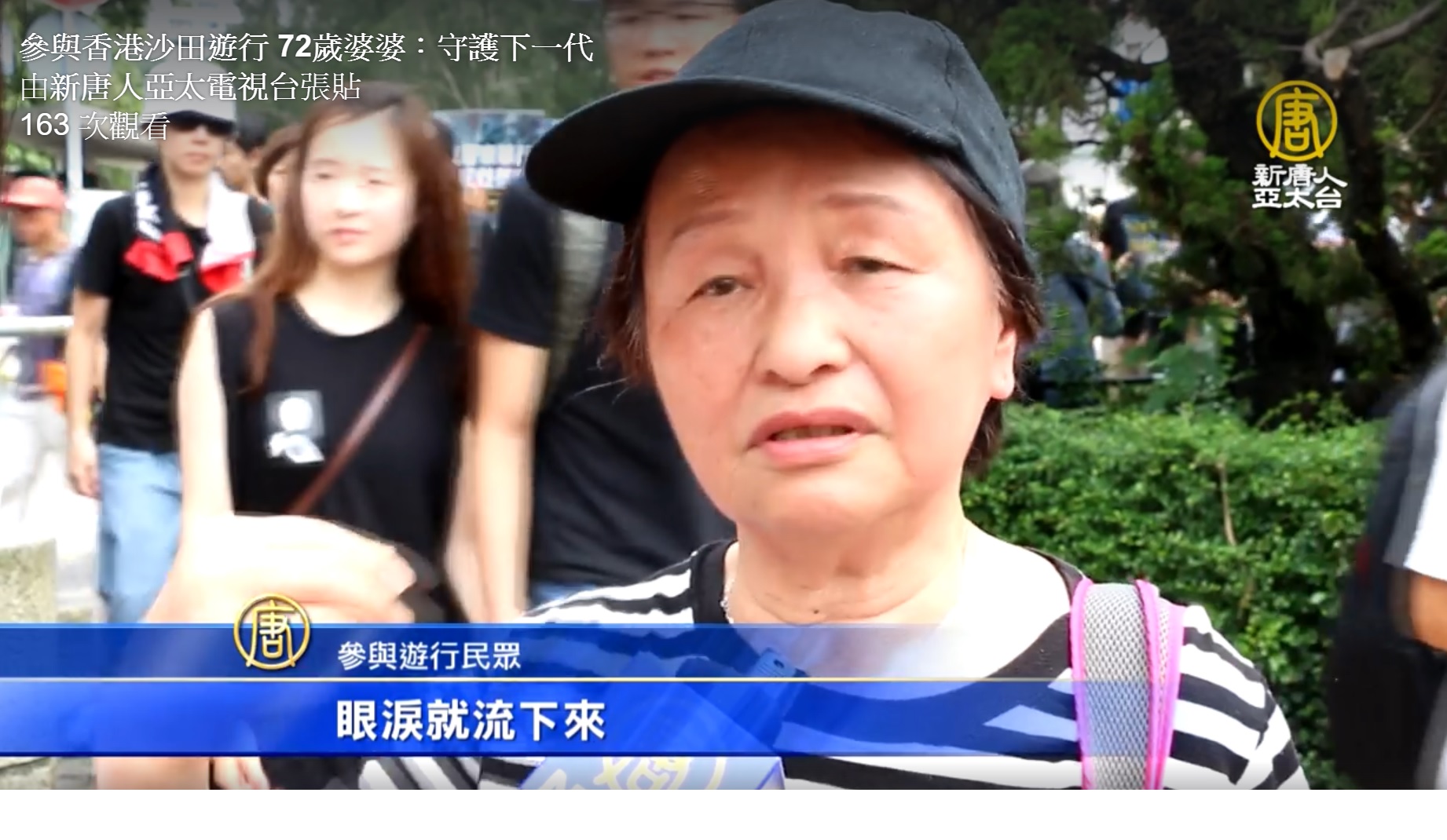 【新唐人亞太台 2019 年 07 月 14 日訊】714港人沙田反送中遊行,香港72歲阿嬤上街,她表示:我大陸出生的,我知道大陸什麼情況,為了下一代,我不怕秋後算帳。