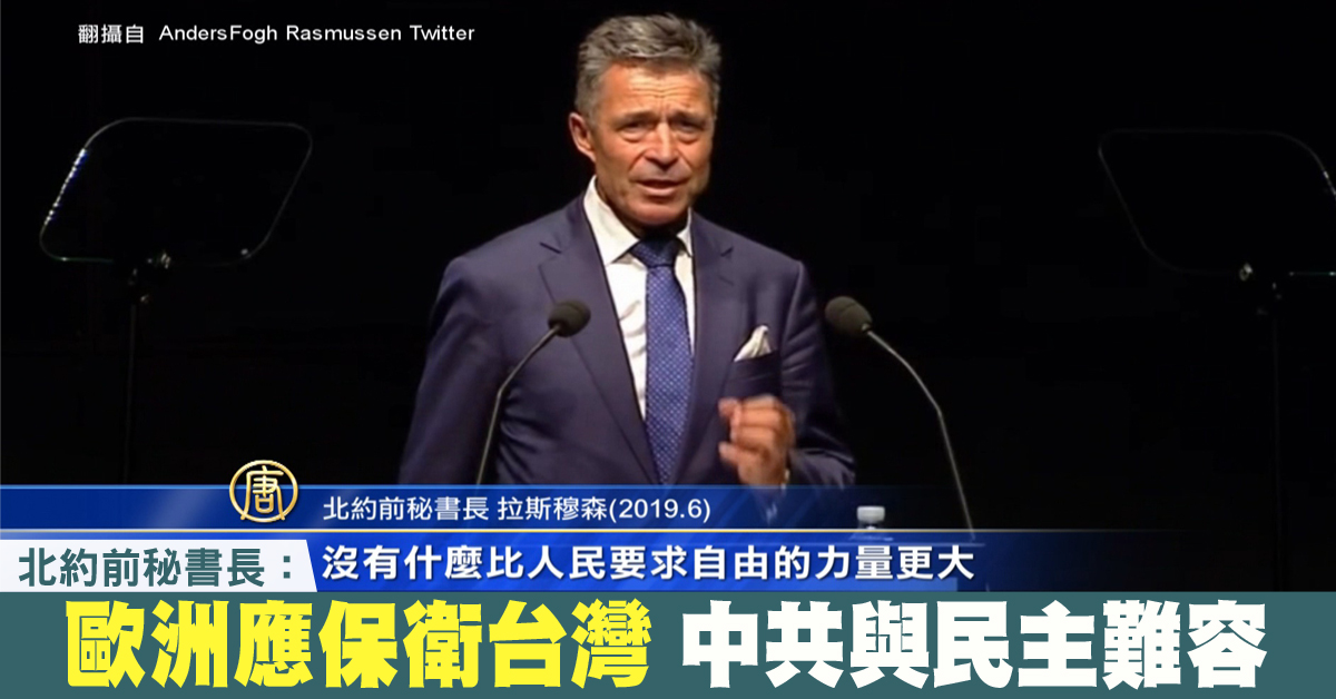 【新唐人亞太台 2019 年 07 月 17 日訊】北約(NATO)前秘書長、丹麥前首相 拉斯穆森,在英國《衛報》撰文,題目是,香港揭示中共是民主的威脅,新歐盟領導人必須保衛台灣。(Hong Kong showed China is a threat to democracy. Now Europe must defend Taiwan)