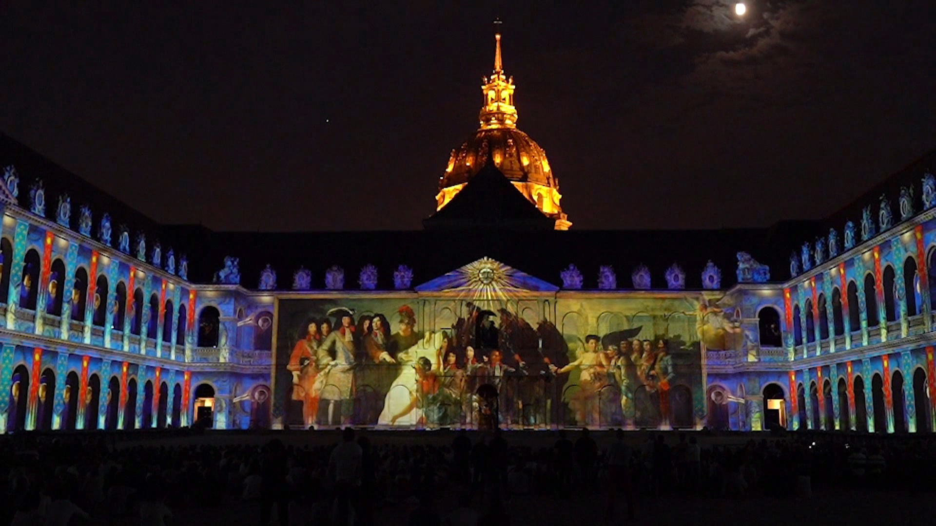 1670年路易十四下令修建的巴洛克建築風格的傷兵院,最早是一所軍醫院,現在成為法蘭西軍事博物館。令人震撼的燈光表演在這夏夜的巴黎,在傷兵院院內的3面墻上,新一代雷射4K視頻投影儀,以180度的視角投射在面積為5000平方米的建築物石牆上。45分鐘的精彩節目,利用燈光、聲效和配音,提供觀眾瞭解巴黎近 3000 年歷史的變遷,