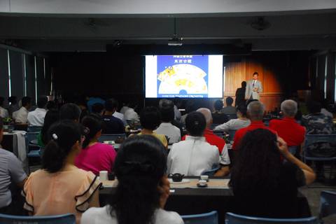 近百名觀眾,專注聆聽講座。(王金丁提供)