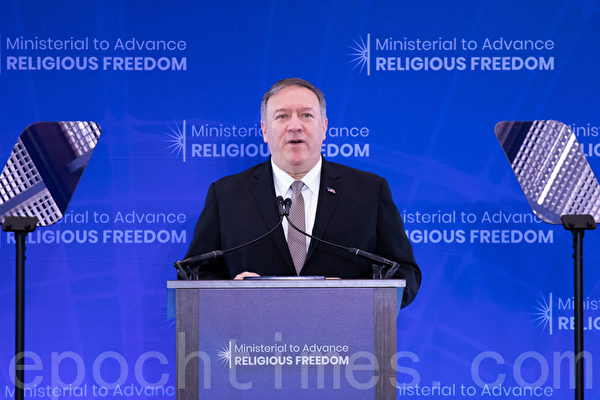 蓬佩奧提到了在中國發生的迫害,中國共產黨不僅控制中國人的生命,還要控制他們的思想,中共官員還阻止其它國家來參加這個會議。(林樂予/大紀元)