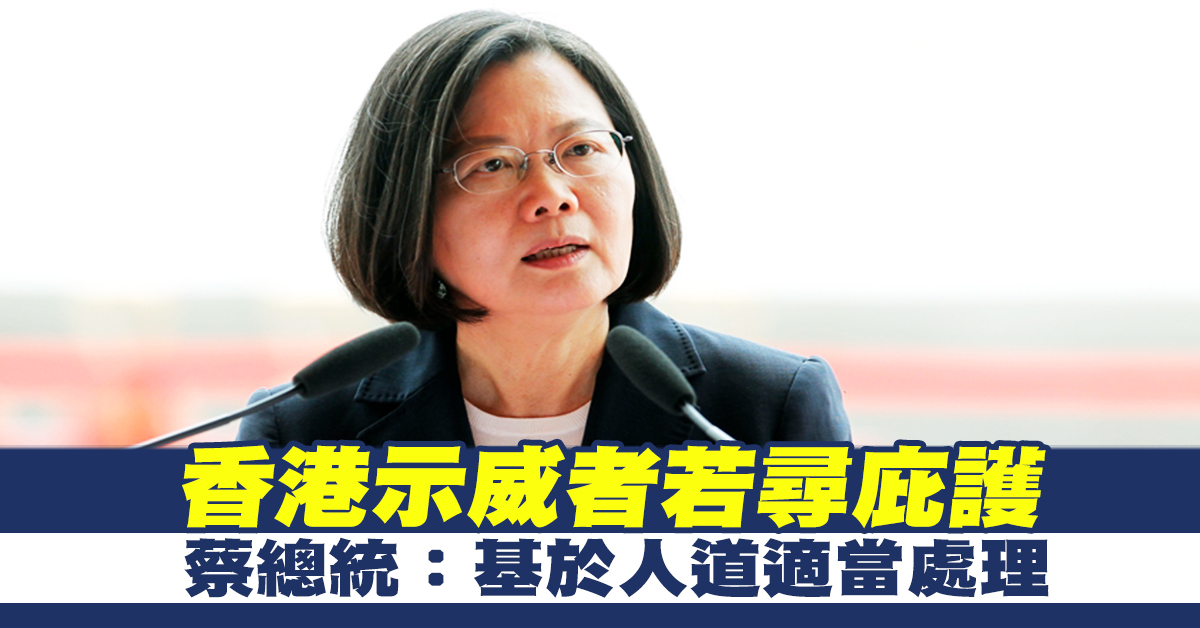 港示威者若尋庇護 蔡總統:基於人道適當處理