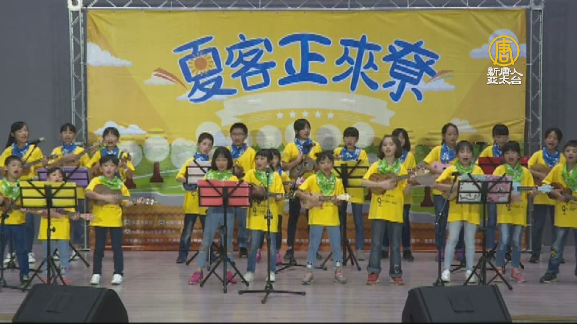 桃園大坡國小的小朋友,以烏克麗麗彈奏輕快的客家歌曲,宣告桃園客庄聚落親子遊學活動,熱鬧登場。