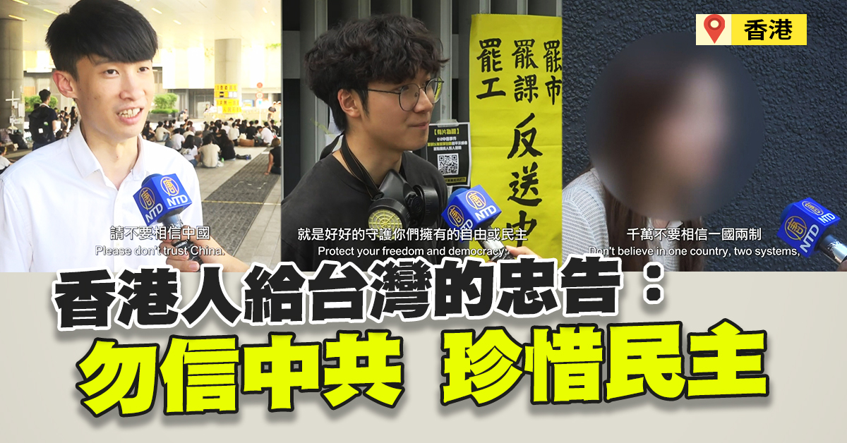 香港民眾:「請不要相信中共,你可以看到香港,我們不是有一國兩制的保證嗎?然而中英聯合聲明裡的承諾,卻是無效的,所以拜託別讓台灣變成下一個香港,我們不想看到這樣的結局。」