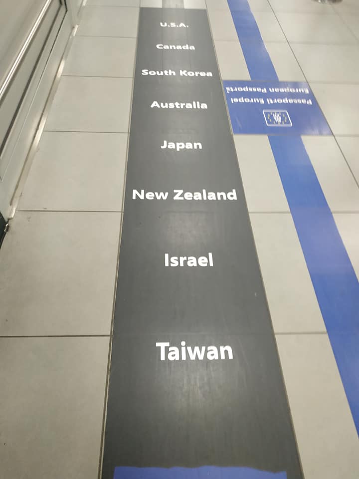 有一名台灣網友16日在臉書上分享自己到羅馬旅遊經歷,他說當時機場一般驗證通道人滿為患,在他正準備要排隊時,工作人員看到他拿著台灣護照就引導他前往快速通關,地上黑色引導線上大大寫著「Taiwan」,不到3分鐘就順利通關,全世界二百多個國家,只有美國,加拿大,南韓,澳洲,日本,纽西蘭,以色列,台灣這8個獨有的權利。他將這段經歷分享到網路上,按讚數超過1.8萬人,有近五千次分享。網友留言表示,「真的是要出了國,才能體會出國際間對台灣地位的重視」還有網友指出,米蘭、慕尼黑機場,持有台灣護照也享有快速通關的待遇。