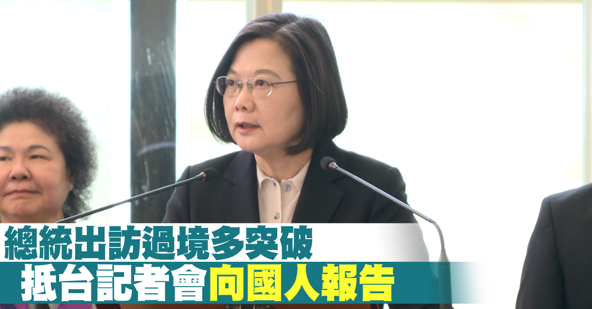 【新唐人亞太台 2019 年 07 月 22 日訊】午報頭條來關心,中華民國總統蔡英文的「自由民主永續之旅」落幕,在今天抵達台灣,這次來回過境美國,美方不僅同意在美國境內,公開舉辦媒體茶敘,AIT主席莫健更是全程陪同。蔡總統中午返抵桃園國際機場,舉辦記者會,向國人報告,稍後,我們會為您即時插播蔡總統談話。