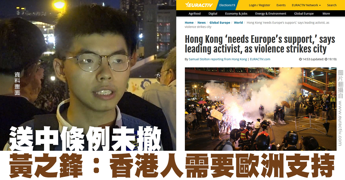 送中條例未撤 黃之鋒:香港人需要歐洲支持