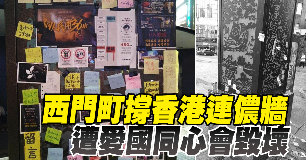 西門町撐香港連儂牆 遭愛國同心會毀壞