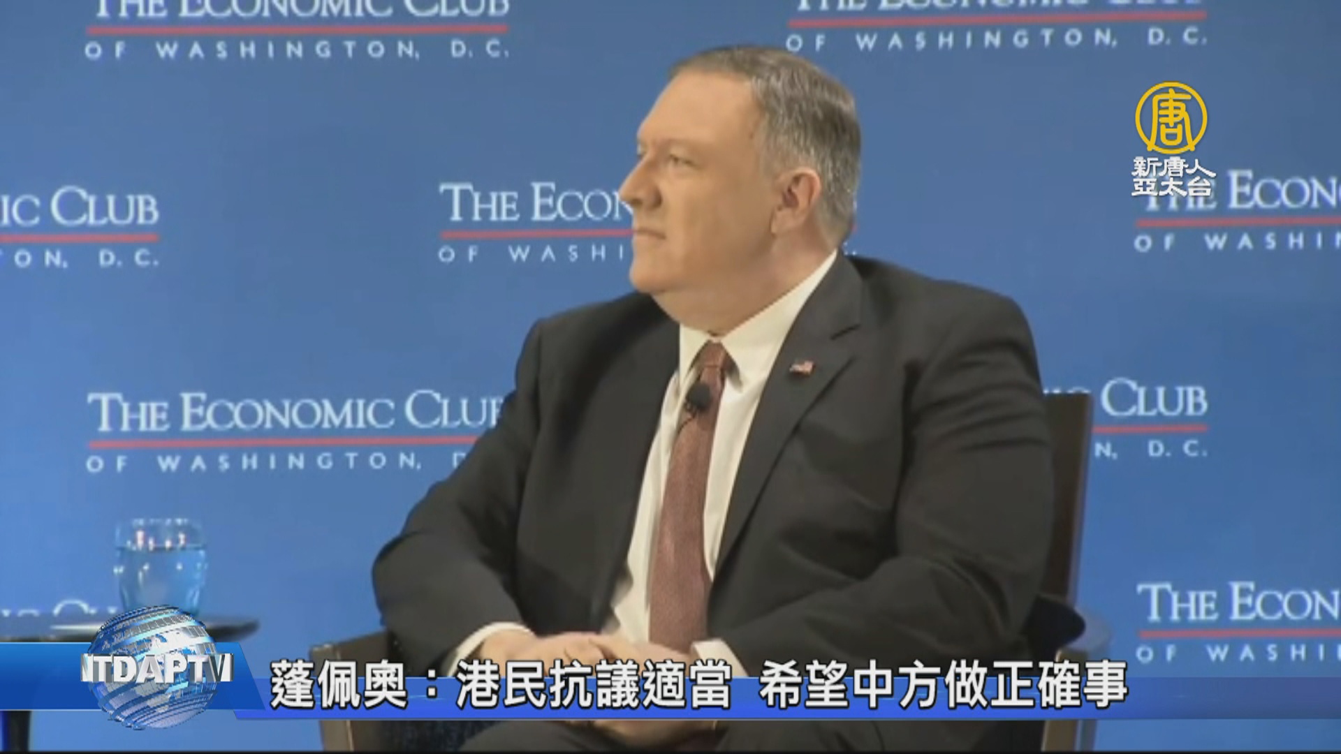 蓬佩奧:港民抗議適當 希望中方做正確事