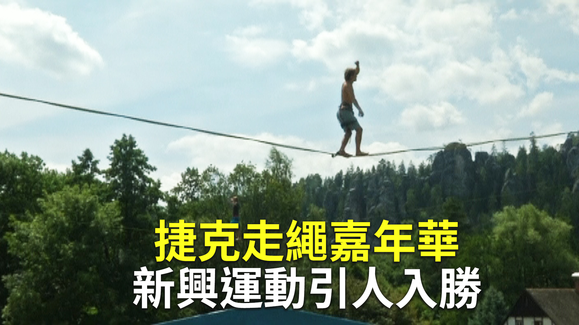 【新唐人亞太台 2019 年 07 月 30 日訊】走繩(Slacklining)是一種新興運動,在細繩上,除了平衡與專注外,還帶有許多挑戰和變化。捷克就舉辦了一場「走繩嘉年華」,既可以挑戰高空走繩,也可讓好手們炫技表演花式走繩,現場還為新手提供教學與體驗,吸引來自40多個國家的走繩愛好者共襄盛舉。