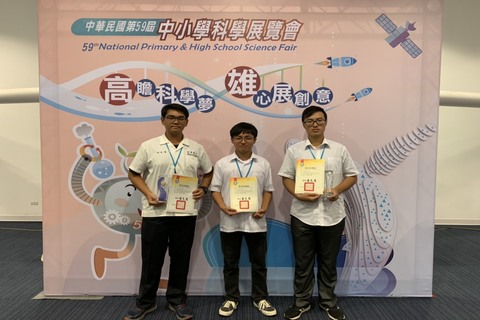 嘉義高工機械科學生在全國科展及及專題競賽榮獲雙料冠軍。(嘉義高工提供)