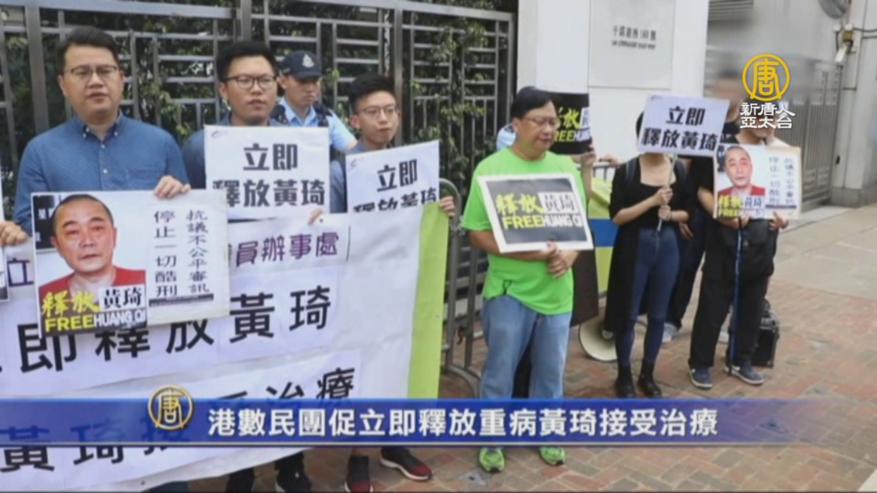 【新唐人亞太台 2019 年 07 月 31 日訊】中國知名異議人士、「六四天網」創辦人黃琦,日前遭中共法院重判12年有期徒刑。香港支聯會等團體星期二(30日)到中共中聯辦外面抗議,要求中共立刻釋放黃琦,讓身患重病的黃琦接受治療。
