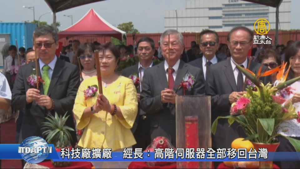【新唐人亞太台 2019 年 07 月 31 日訊】傳動元件廠直得科技,今天(31日)在台南樹谷園區,舉行第二期廠房動土典禮,台灣經濟部長沈榮津受邀出席,他透露,貿易戰下台商回流的好消息,台商在中國大陸的高階伺服器生產,已全部移回台灣。