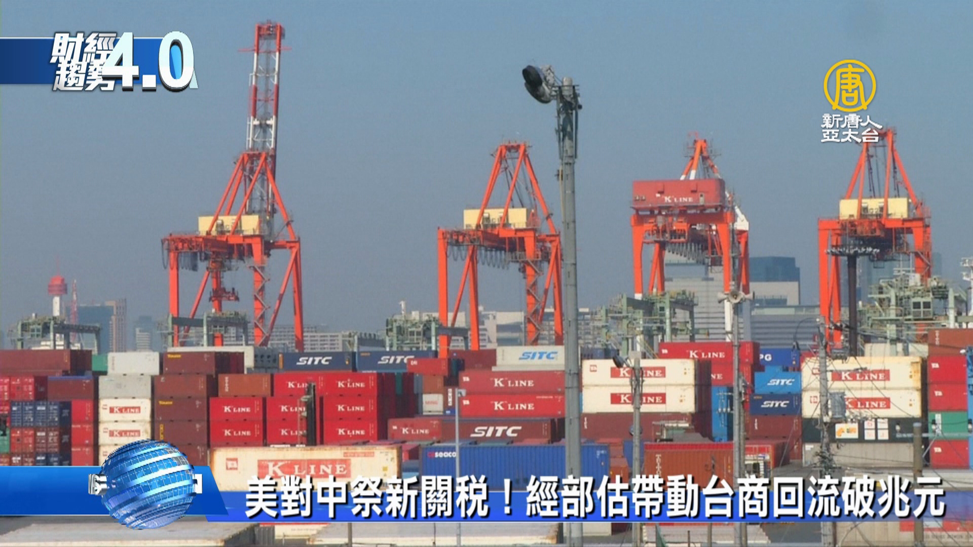 【新唐人亞太台 2019 年 08 月 03 日訊】美國總統川普,宣布加徵關稅,包括手機、平板、筆電等資通訊科技產品,對台灣影響各界關注,學者分析,台灣直接出口消費財、最終產品比重不高,多數受影響族群是 在中國生產的台商,這波關稅也將帶動供應鏈搬遷,經濟部預期可能推動台商回流資金突破兆元。