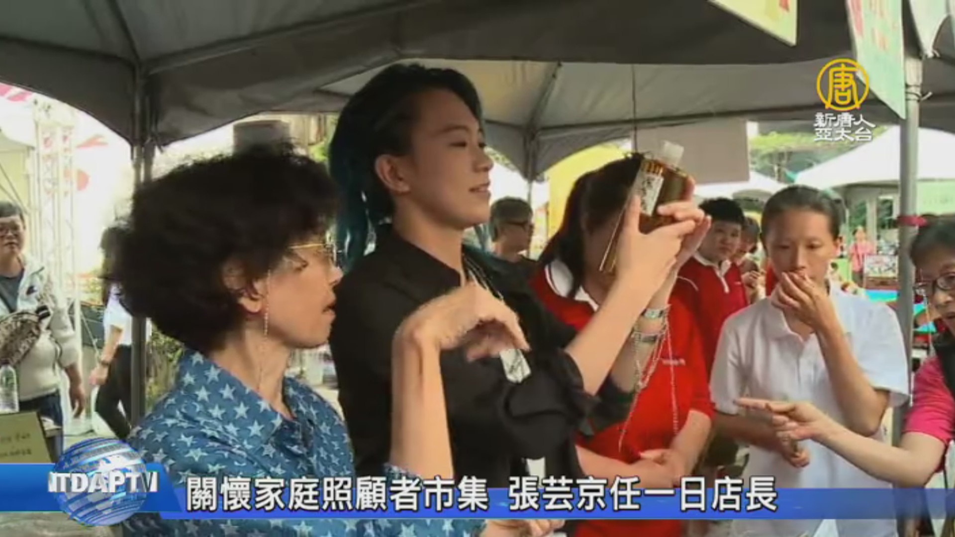 實力派歌手張芸京現身公益市集,當起愛心小舖的一日店長,小小攤位前,擠滿了熱情的民眾。