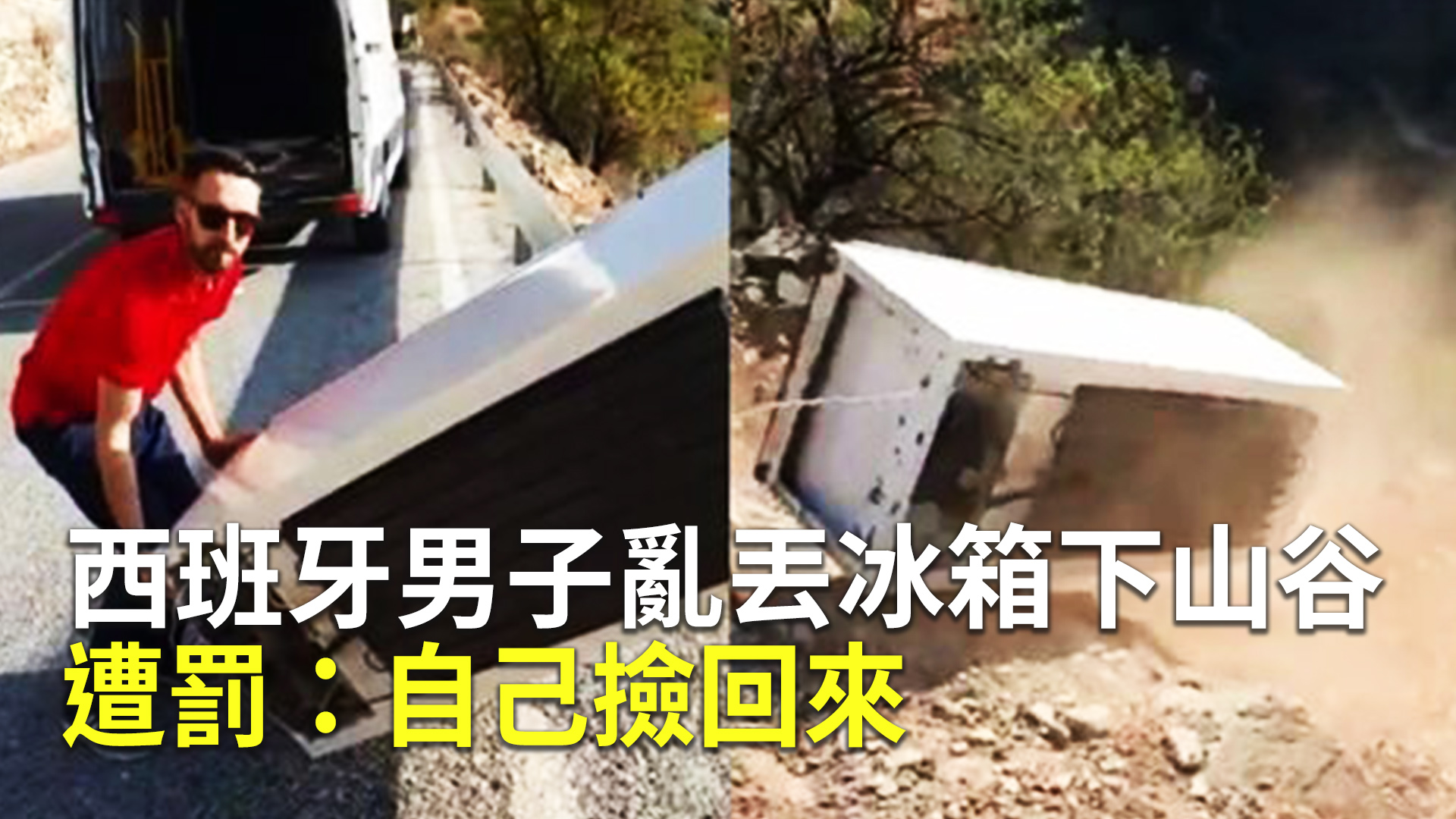 【新唐人亞太台 2019 年 08 月 06 日訊】西班牙一名男子隨意把廢棄冰箱丟下山谷,還將過程拍下來PO上網。有人向警方檢舉,結果不但要被罰款,他還必須自己走下山谷把冰箱搬回來,網友們都大讚,這是最好的懲罰。
