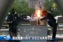 2013-08-06 21:39:09美國在日本廣島投下原子彈,而後第二次世界大戰結束,至今已經68年,在日本進行68周年追悼會的同時,安倍首相強調日本根除世界上核子武器的責任,不過,同時日本政府也受到外界對其發展核電的批評。