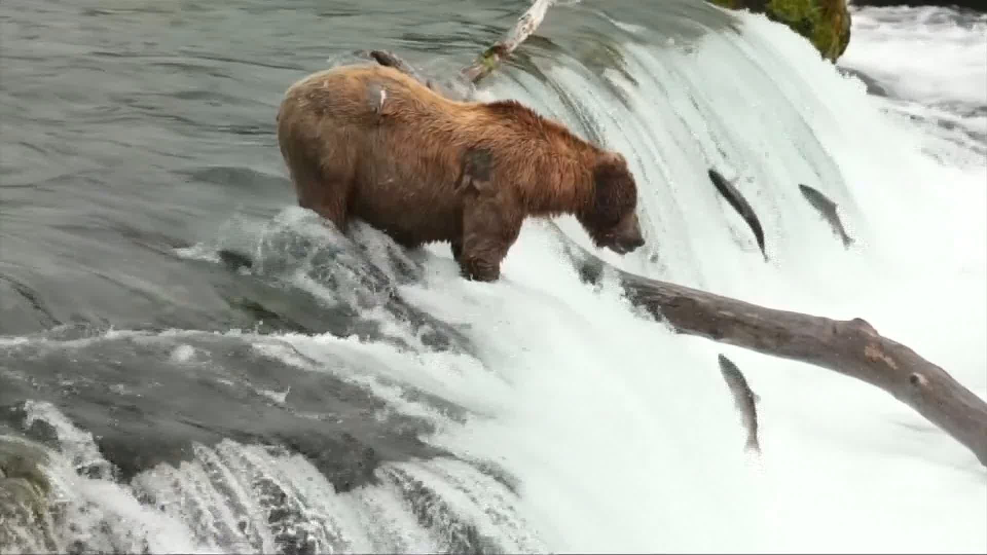 【新唐人亞太台 2019 年 08 月 08 日訊】在美國阿拉斯加的卡特邁國家公園裡,每年夏天都可以看到無數條鮭魚「跳龍門」,回到出生地產卵,還可以看到在河裏守株待兔的棕熊。