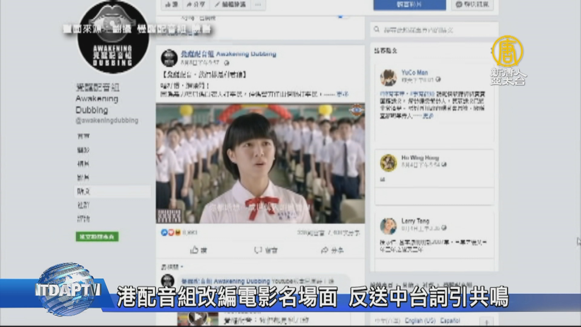 【新唐人亞太台 2019 年 08 月 10 日訊】帶您來看到,香港各界人士,對於反送中都相當關心。在網路上,就有配音組,拿電影《我的少女時代》經典場面,來改編。讓電影主角也為反送中發聲,引起網友共鳴。