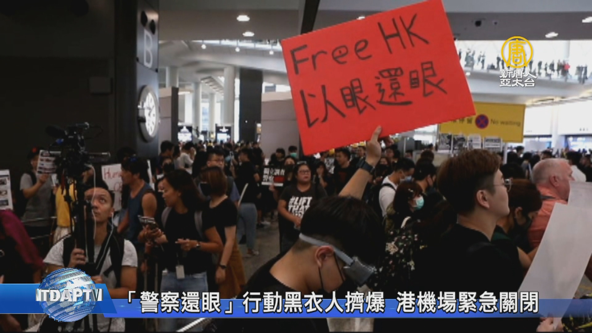 【新唐人亞太台 2019 年 08 月 12 日訊】火線新聞,馬上來看到,昨天晚間,警民爆發激烈衝突,有少女疑中布袋彈槍,右眼受傷,事件引發大批市民不滿,有香港民眾發起「警察還眼」行動,黑衣人潮擠爆香港機場。下午機管局宣布,除了抵港航班之外,其餘航班今日全部取消。