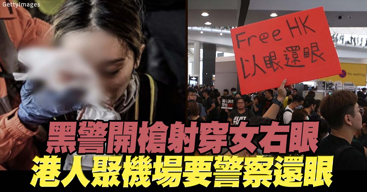 黑警開槍射穿女右眼 港人聚機場要「警察還眼」