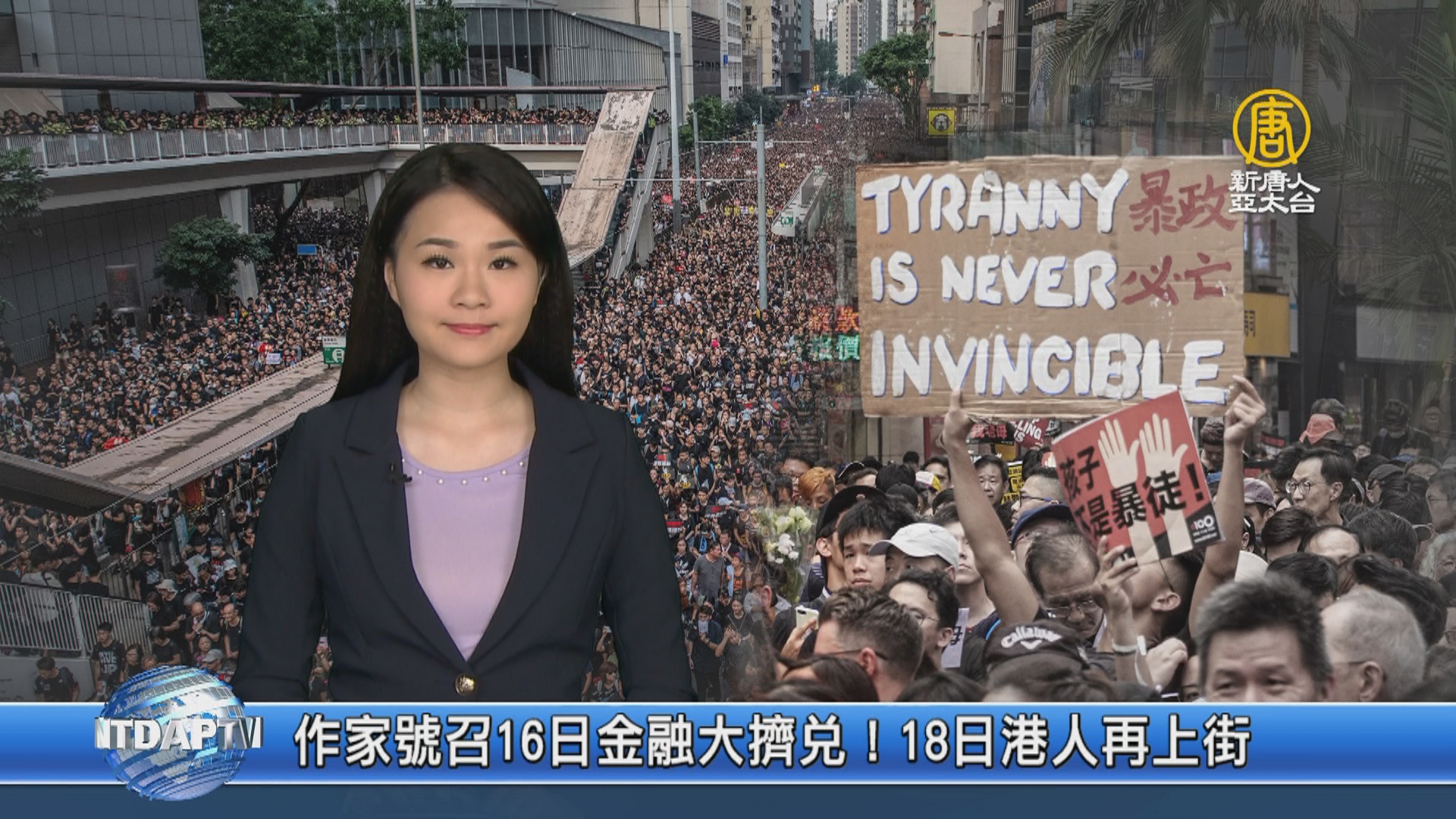 【新唐人亞太台 2019 年 08 月 13 日訊】港人反送中升級,香港作家阿樹,呼籲港人在8月16日發起「金融抗爭」,將全部銀行存款提領而出,癱瘓香港銀行體系。另外,香港「民間人權陣線」決定在18日星期天,以「止黑暴,制警亂」為主軸發起遊行。今天下午一點將會公開說明。