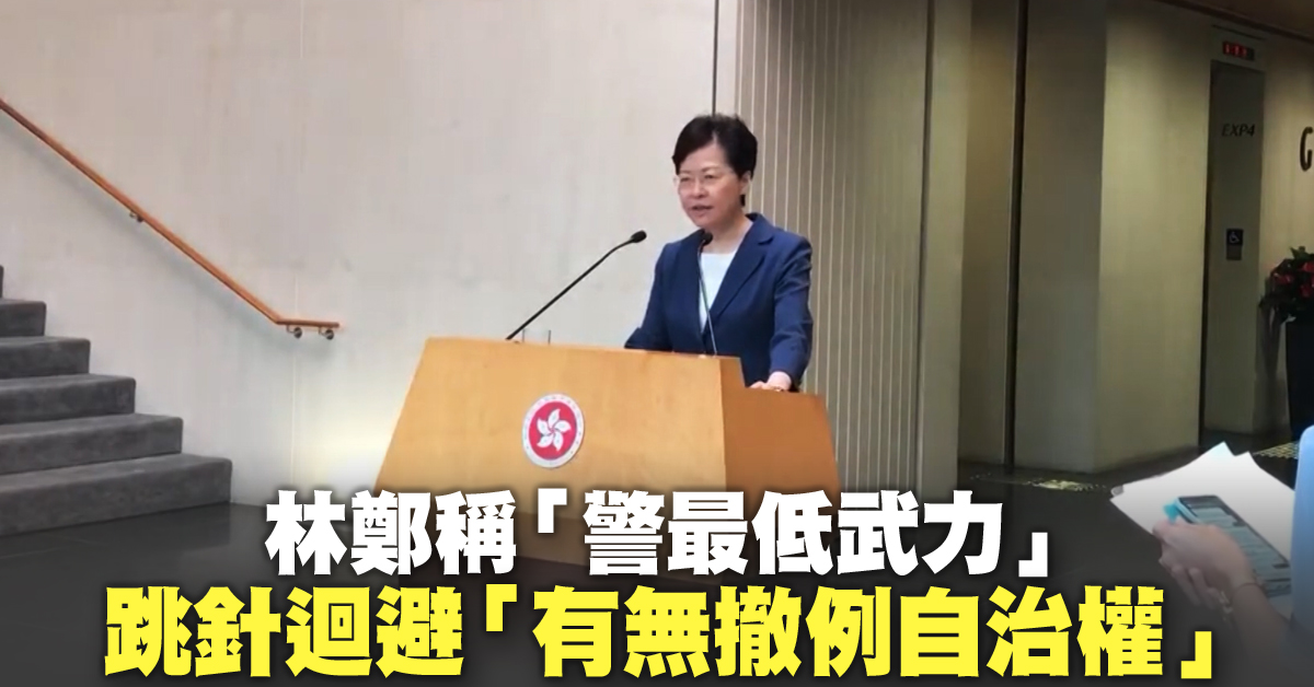 林鄭稱「警最低武力」跳針迴避「有無撤例自治權」