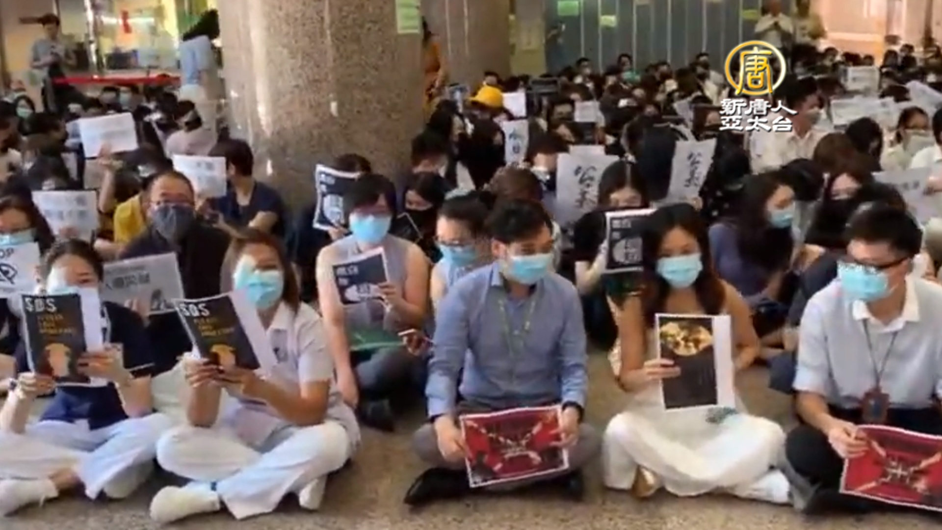 13日,多間公院醫護人員發起靜坐,抗議警方濫用武力、政府漠視民意。
