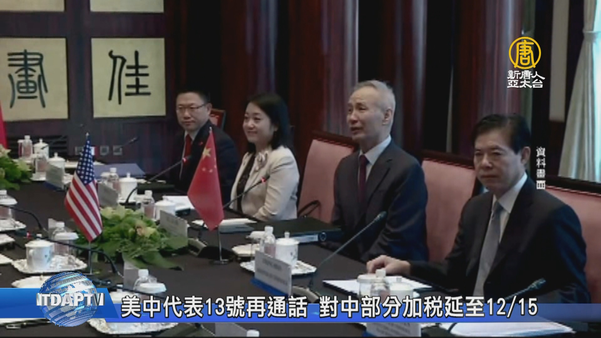 【新唐人亞太台 2019 年 08 月 14 日訊】午報頭條先關心美中貿易戰進展,美國預定9月1日起再對價值3000億美元的中國產品加徵10%進口關稅,但美方週二宣布,延到12月15日再對行動電話、筆記型電腦和電玩裝置等電子產品加徵關稅,不過,蘋果的,最新消息是,美中代表13號晚間就關稅進行通話,並約定在兩週內再次通話。