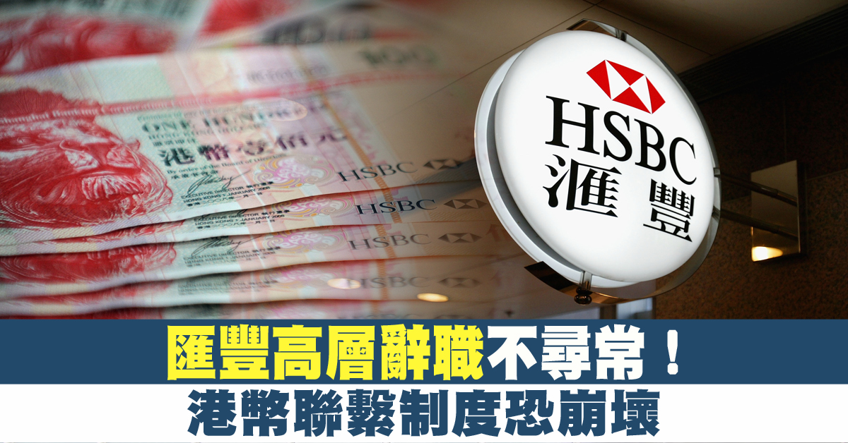 匯豐高層辭職不尋常! 港幣聯繫制度恐崩壞