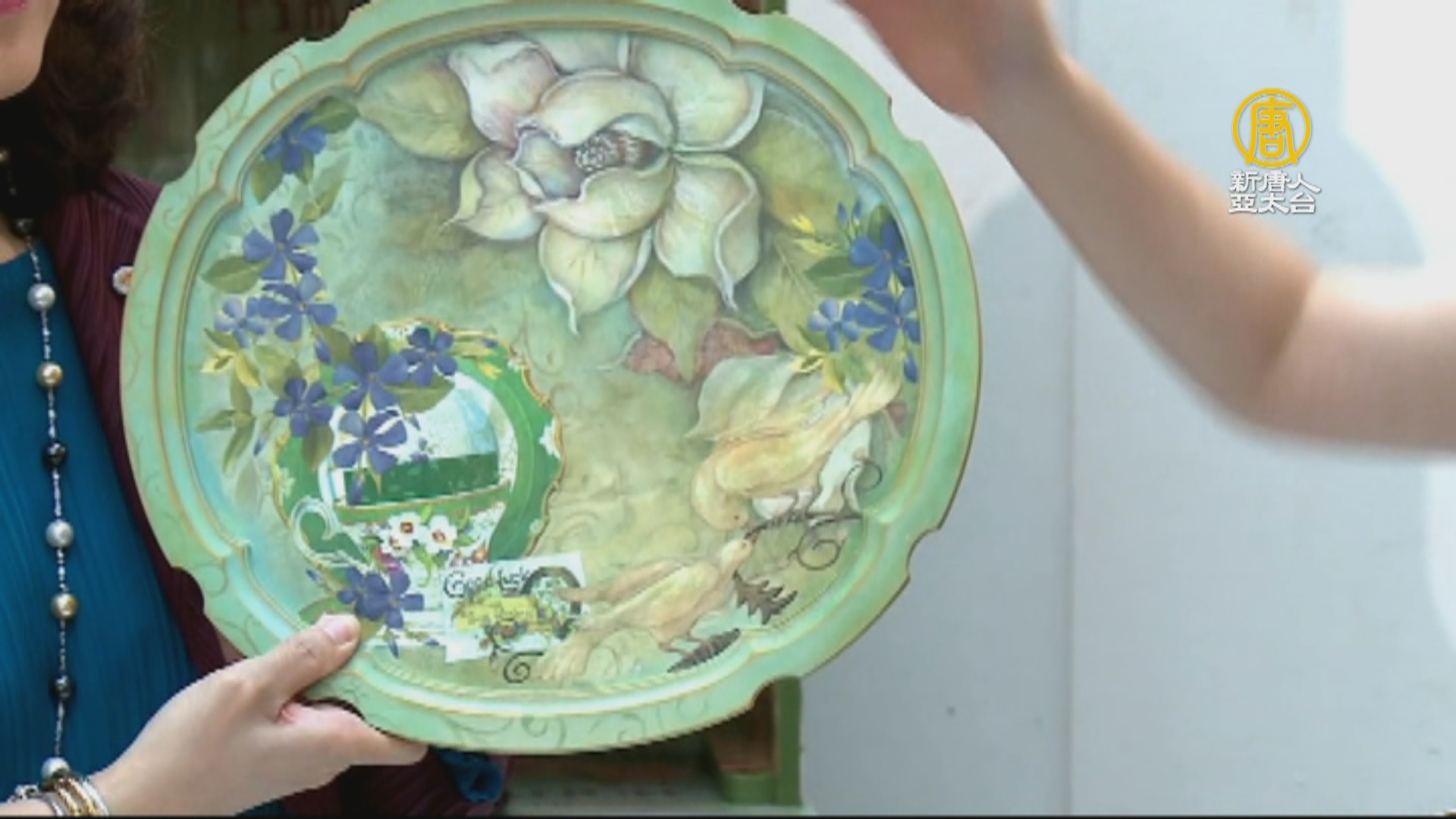 「蝶古巴特」起源自東方漆器的裱貼技法,漆器所呈現的雅緻與高貴氣質、技法,深深擄掠歐洲人的心,參展會員潘靜香的中國風作品,非常典雅,值得細細品味。