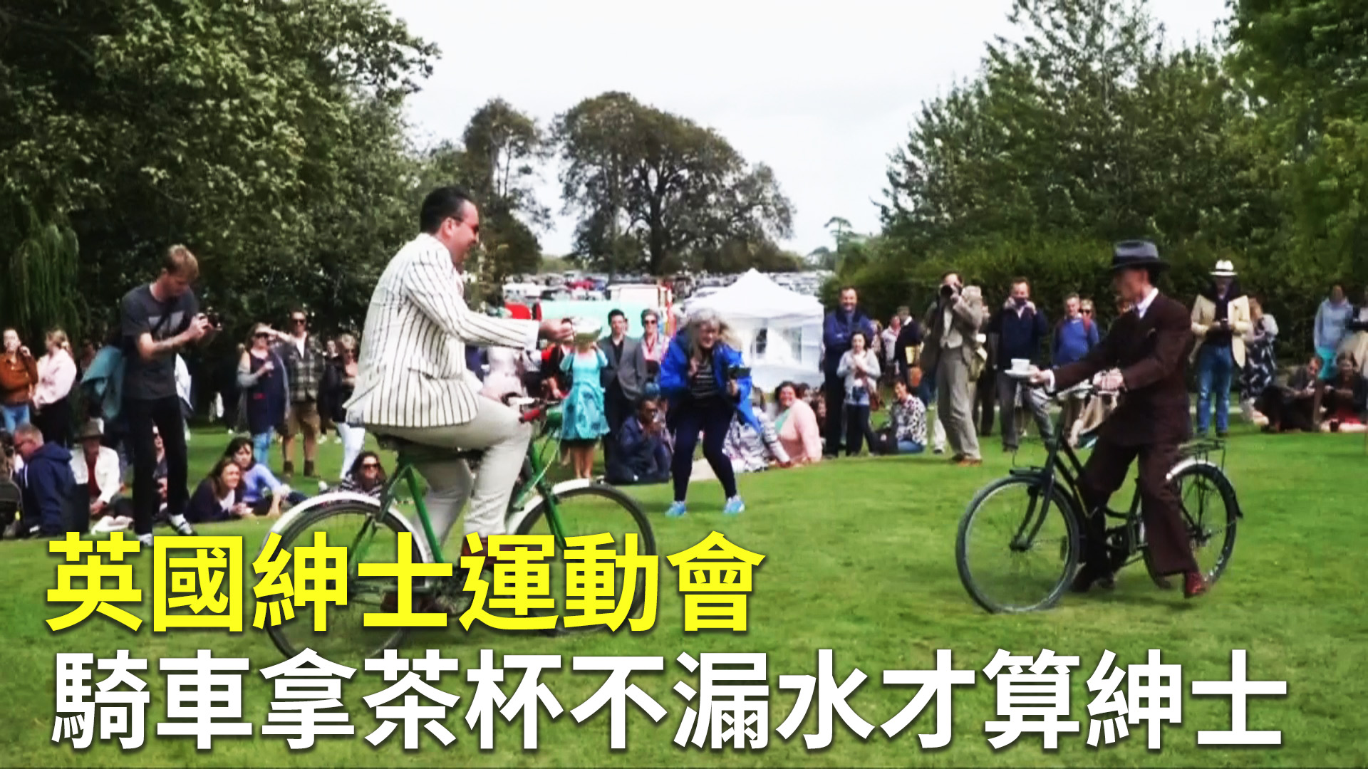 【新唐人亞太台 2019 年 08 月 21 日訊】英格蘭南部舉辦一年一度的紳士運動會,比賽項目滑稽又有趣,像是手拿茶杯,一邊騎車還要一邊穩住身子讓杯子裡的茶水不外漏,現場還有評審評分,不過比賽重點不在體能,而在評比參賽者的紳士技能。