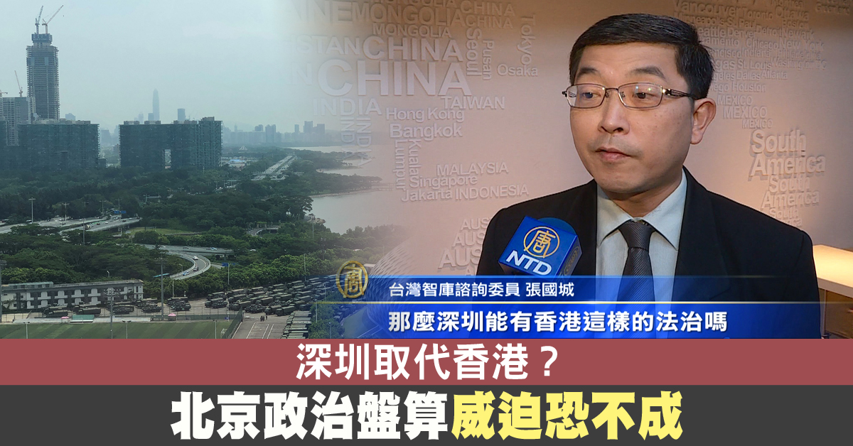 台灣智庫諮詢委員 張國城:「深圳又要弄新特區,是不是代表說他意識到,他現在經濟發展,又已經到了一個瓶頸的地步了?所以必須要有一個新的發展,這是第一個,第二個就是這個香港的地位,其實不是一朝一夕可以建立起來的,它重點是在於它的法治、它的自由,還有它跟這個國際上接軌的這個優勢,那麼深圳能有香港這樣的法治嗎?深圳能有香港這樣的自由嗎?這個中共能為深圳訂一部基本法嗎?我看大概都不太可能,那既然不是這樣子的話,那我們怎麼有辦法說,深圳就、新的深圳會好過現在的深圳,還是說好過上海,好過其它的地方。建立一個新的深圳,這個、縱使這個一切順利,也不是三年五年,就一定可以達成這個樣子的規模,我想這一點是這個誰都清楚的事情,所以在這個清況之下我認為,政治宣示是大於這個實質意義的。」