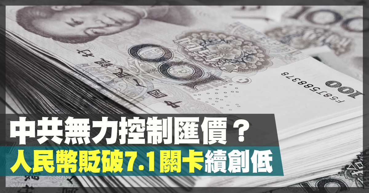 中共無力控制匯價?人民幣貶破7.1關卡續創低