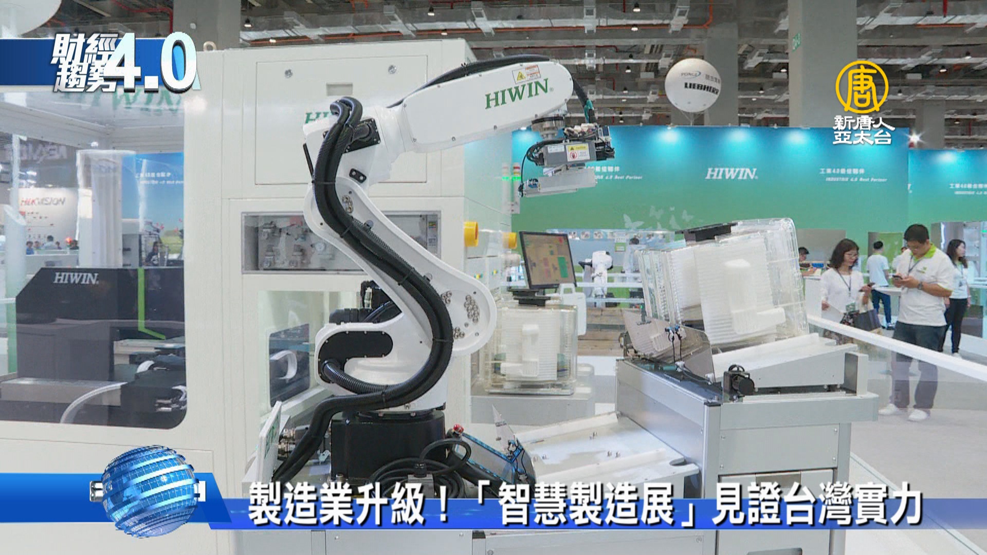 【新唐人亞太台 2019 年 08 月 24 日訊】關鍵時刻,帶您迅速掌握潮流趨勢,歡迎您收看財經趨勢4.0,我是趙庭譽。首先來看到,「亞洲工業4.0暨智慧製造系列展」,本週登場,今年展出規模再創新高,共6展聯手,超過1100家國內外指標大廠參展,展品也多從單項,轉為整廠呈現,許多台廠結合集團力量,展出無人工廠,像是物流業、半導體等相關新應用,展現台灣製造業優勢。