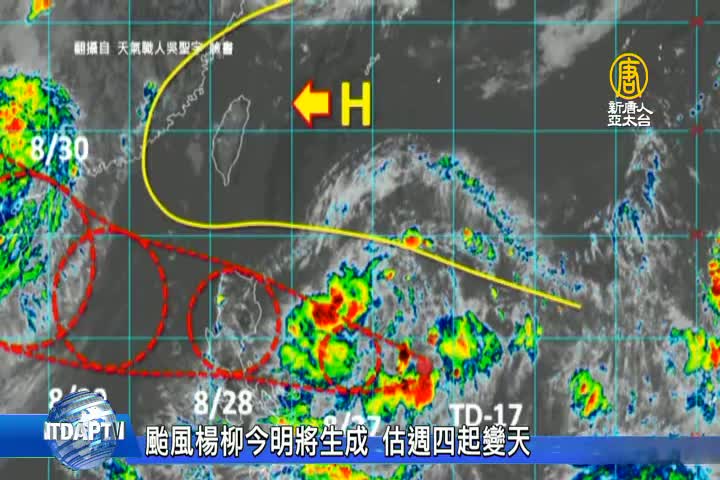 2019-08-29 09:13:19歡迎您收看8月29日的早安新唐人,我是余宗翰,先來帶您關心今天的天氣情況。氣象局表示,從今天開始,一直到星期六,受楊柳颱風外圍環流影響,東半部及南台灣,將出現短暫陣雨或雷雨,尤其週五、週六水氣最多。另外,颱風「玲玲」可能會在下週生成,但是對台灣的影響,還有待後續觀察。帶您一起來看到國際媒體重要訊息。