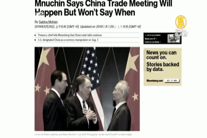 【新唐人亞太台 2019 年 08 月 30 日訊】好,雖然有美國媒體認為美中下週不會談判,但川普證實就在週四雙方已經展開溝通,不過,與此同時,美方對中國的新關稅,也如期開徵。
