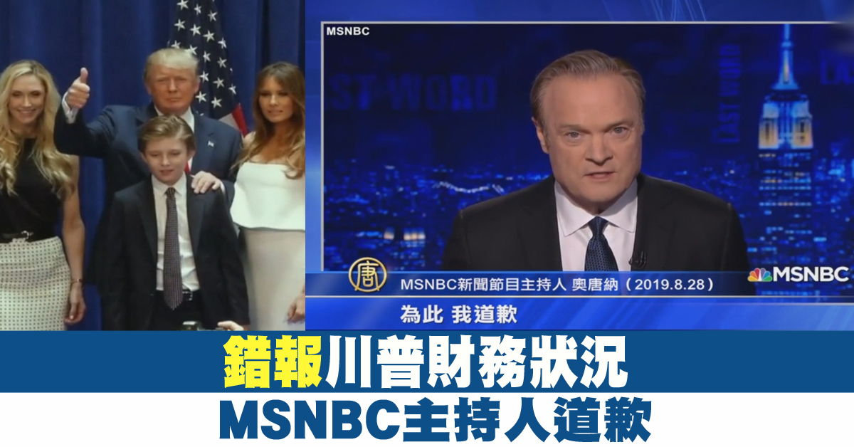 【新唐人亞太台 2019 年 08 月 31 日訊】再來看到,美國全國廣播公司NBC分支、MSNBC觀點類新聞主持人,勞倫斯.奧唐納,週三為錯誤報導川普總統財務狀況而公開道歉。