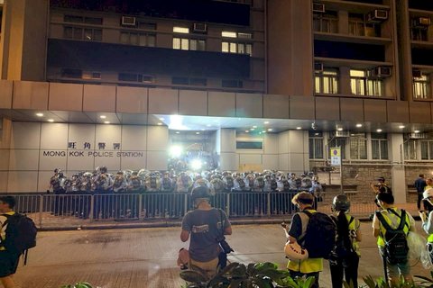 為抗議警方粗暴執法,旺角警署成為香港民眾抗議對象。(翻攝自「香港大學學生會學苑即時新聞 Undergrad, H.K.U.S.U. Instant News」臉書)