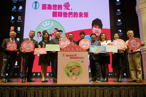 大葉大學校長梁卓中,公益大使王宏恩等人共同宣布千立方募款行動起跑。(大葉大學提供)