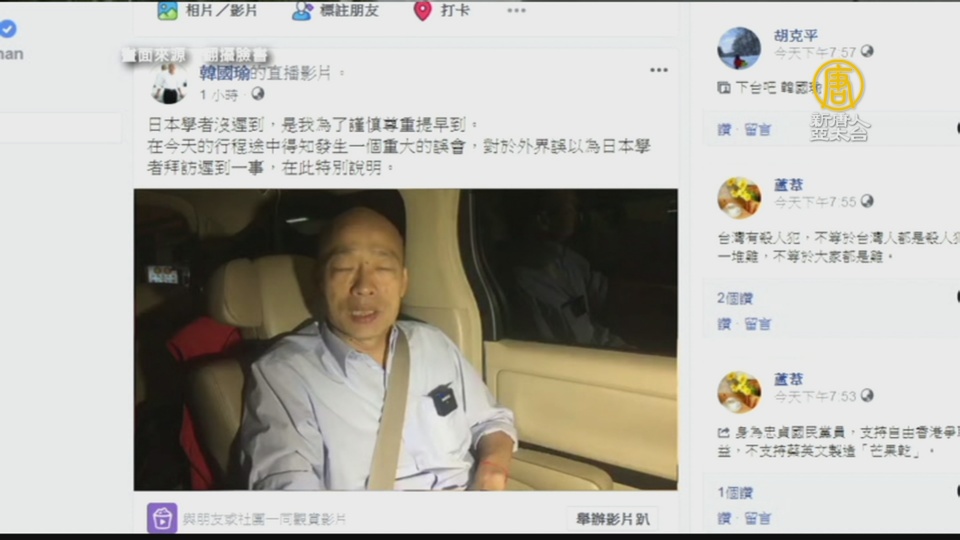 日學者駁斥遲到 韓國瑜直播滅火:是我提早到