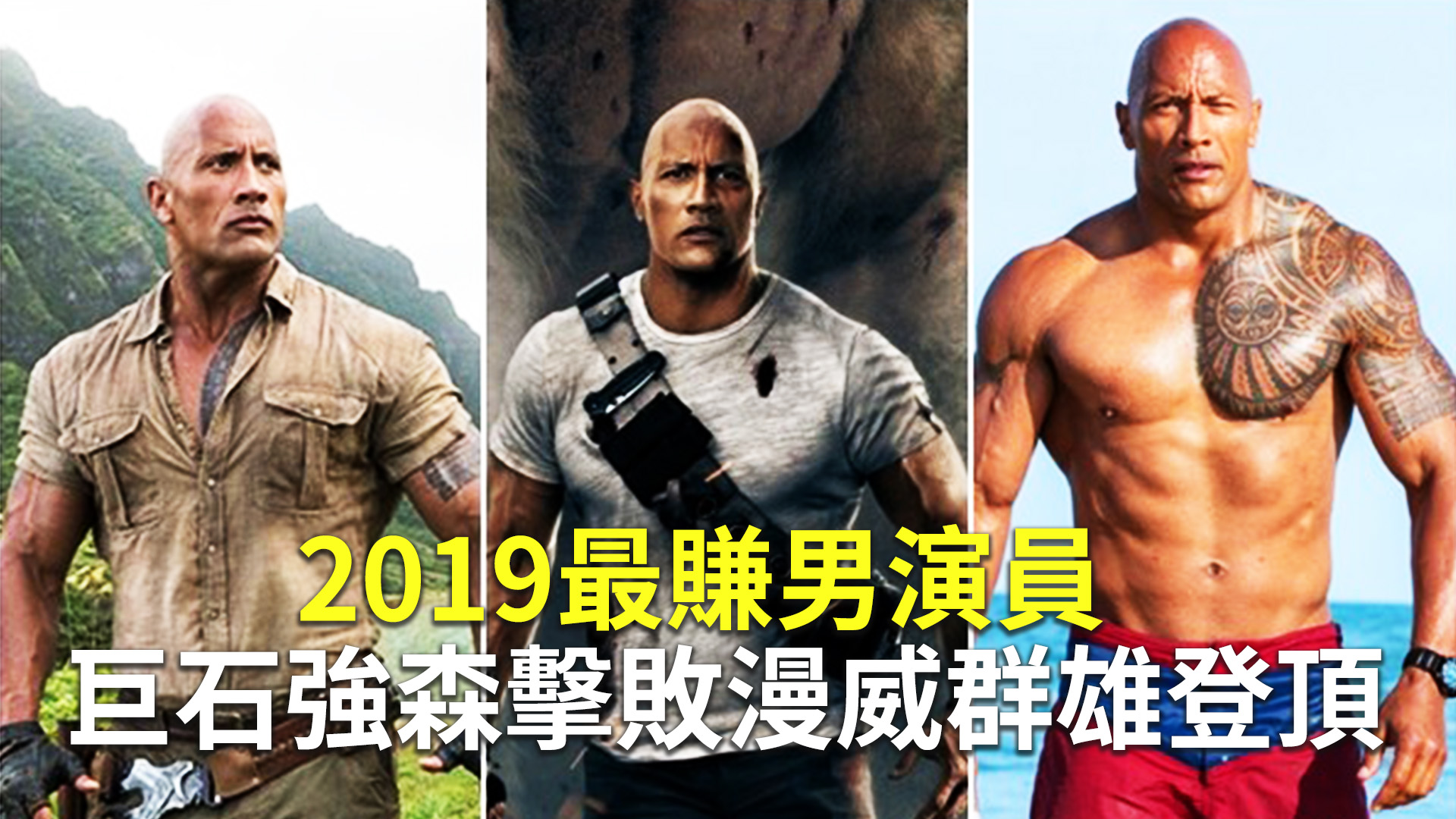 《富比士》雜誌公布2019年全球收入最高男演員排行榜,47歲的巨石強森,擊敗眾多復仇者聯盟英雄,以8940萬美元、折合台幣約27.7億的年收入,名列第一。女演員則由黑寡婦史嘉蕾喬韓森,以5600萬美元、折合台幣17.3億,蟬聯冠軍。