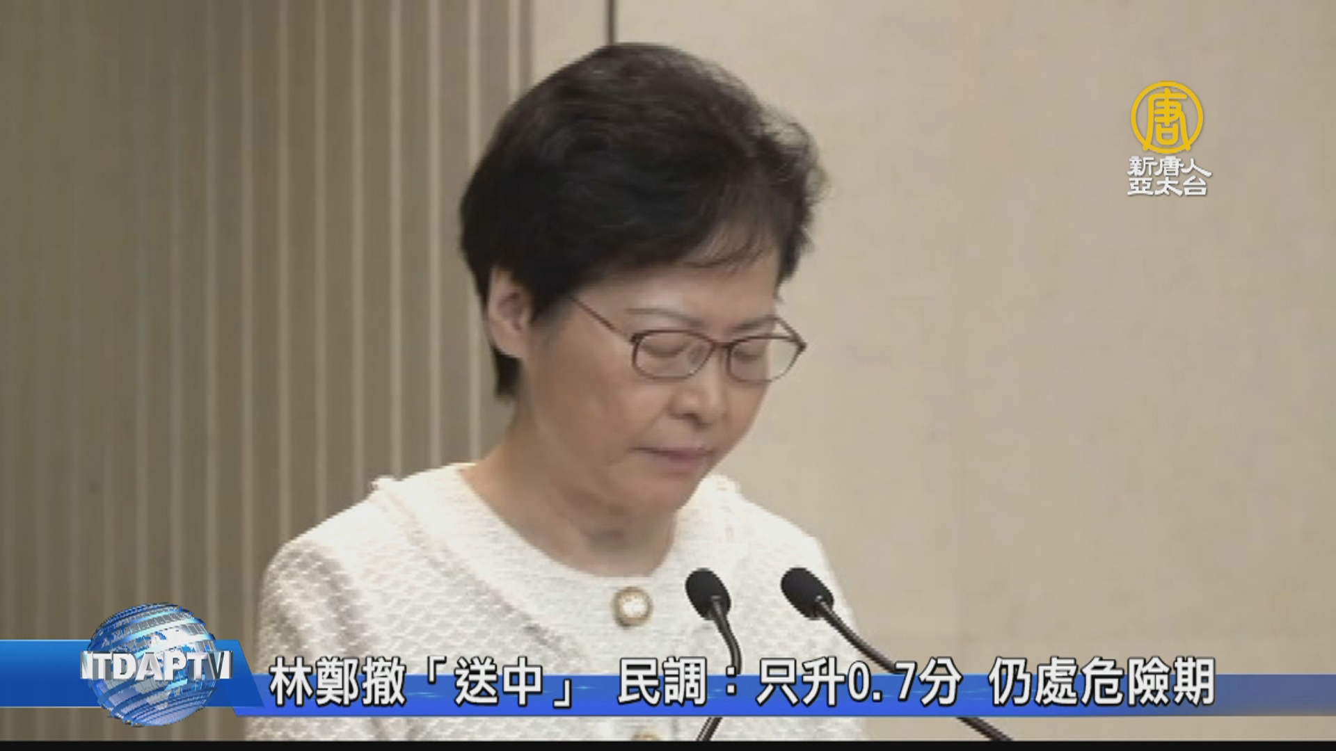 林鄭撤「送中」 民調:只升0.7分 仍處危險期