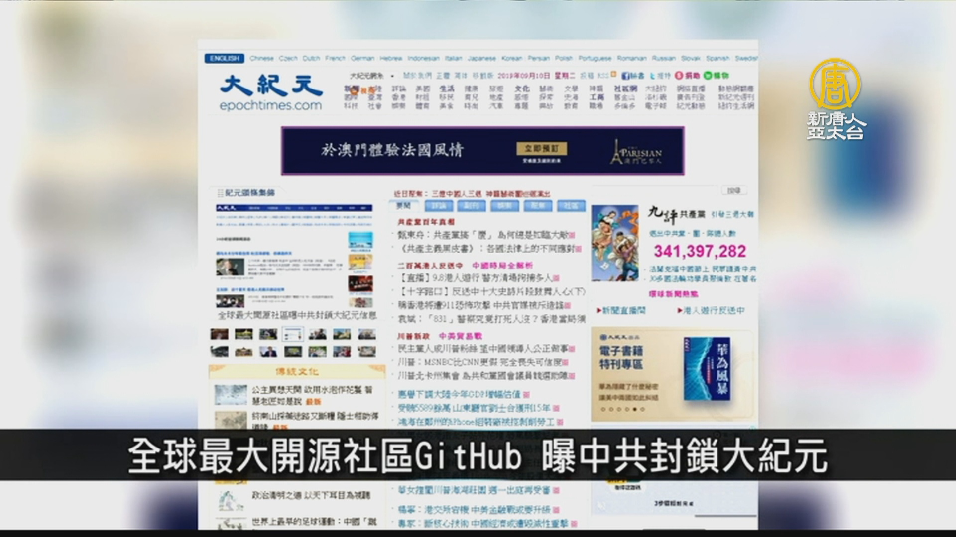 全球最大開源社區GitHub 曝中共封鎖大紀元|中國一分鐘
