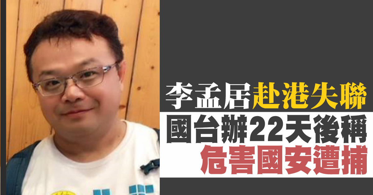 李孟居赴港失聯 國台辦22天後稱危害國安遭捕