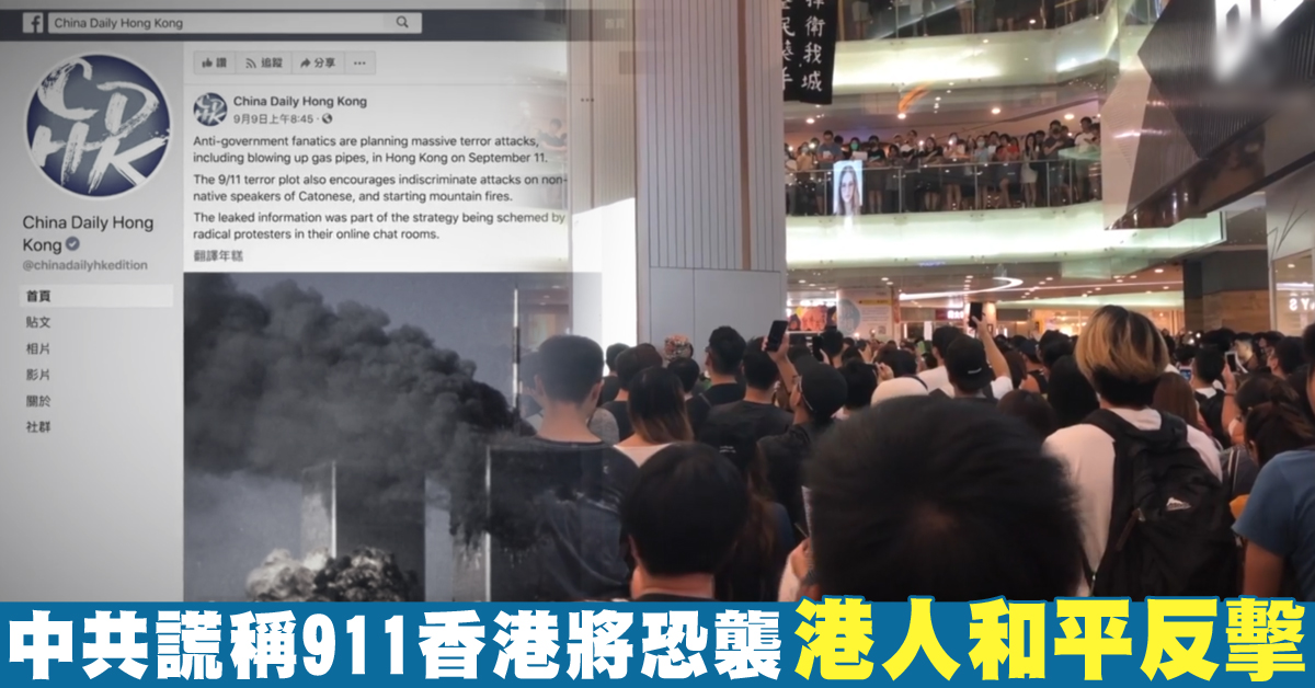 中共官媒《中國日報》香港版,9月9號在臉書發帖稱:有「狂熱反政府人士」,計劃9月11日在香港發動大型恐怖襲擊,帖文展示了一張聊天室截圖作為消息來源。並用美國911事件的照片做配圖。引起巨大爭議。