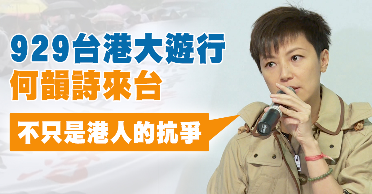 香港歌手 何韻詩:「香港人其實真的已經正式的失去遊行的自由,台灣人你們還能夠站出來,還能夠走到街上去為自己,為香港人、為人權、自由、法治、公益等等站出來,你們一定要站出來,9月29號、希望每一個台灣人都,能夠在街上見到你們。」