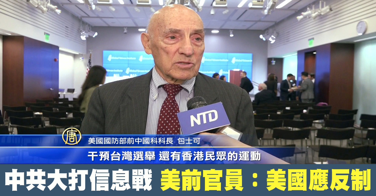 美國國防部前中國科科長 包士可:「(信息戰)不僅是針對香港,也是針對台灣,對美國,對很多區域國家。其概念就是要削弱民主國家抵抗北京這種入侵的意志。」